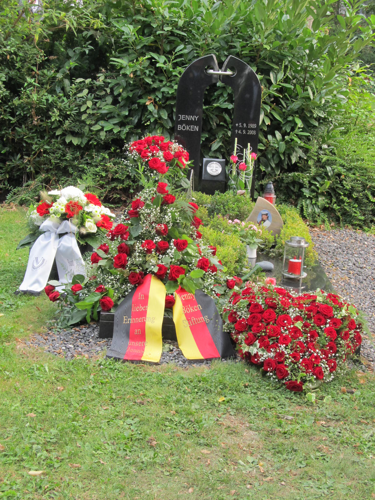 Um 17 Uhr begann das Gedenken an Jennys Grab auf dem Friedhof in Geilenkrichen-Teveren. Ich als Vorsitzende der Jenny-Böken-Stiftung und Jennys Mutter eröffnete die Zeremonie. In Vertretung des Bürgermeisters begrüßte der Ortsvorsteher von Teveren, Hans-Josef Paulus, die Gäste und erinnerte an Jenny, die vor 10 Jahren viel zu früh von uns gegangen ist. General a.D. Leopold Chalupa, der ehemalige oberkommandierende Befehlshaber der westallierten Streitkräfte