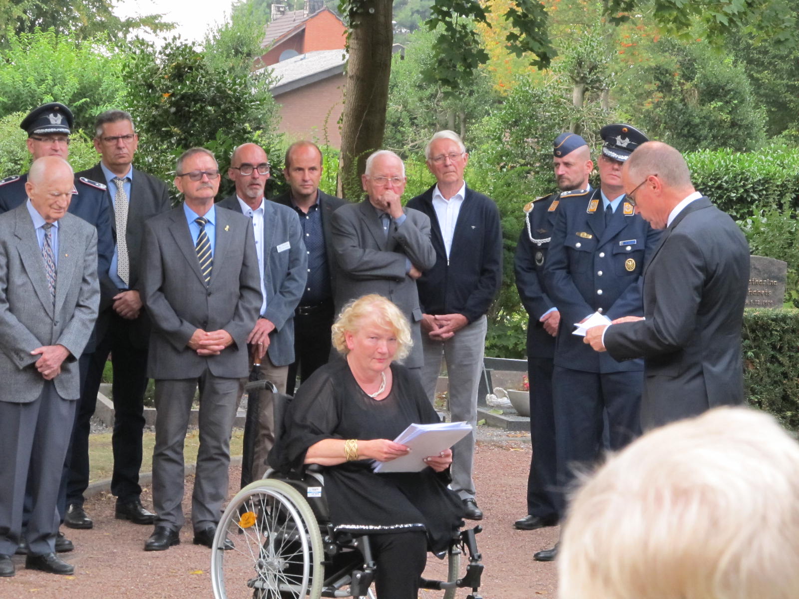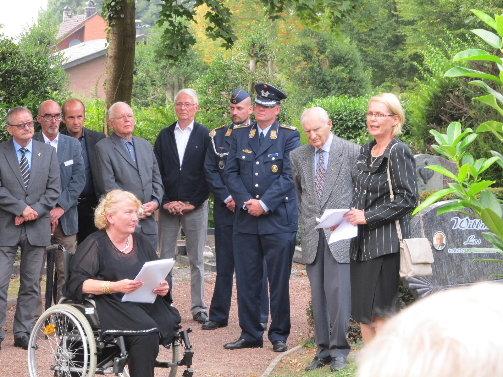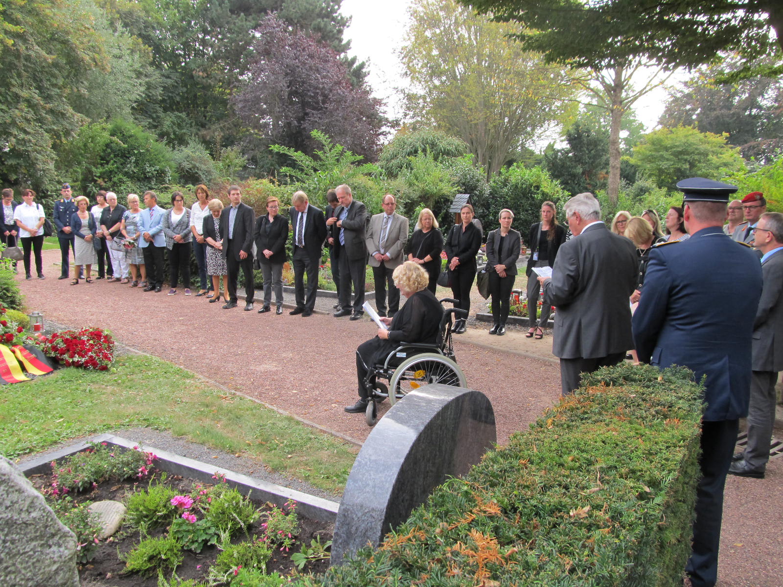 Die Beauftragte Angelegenheiten für Hinterbliebene , Frau Ministerialrätin, Diplom-Psychologin Susanne Bruns war extra aus Berlin angereist. Sie verlaß ein Grußwort der Bundesministerin der Verteidigung, Frau Dr. Ursula von der Leyen. Der Kommandeur des Verifikationsamtes, Brigadegeneral Peter Braunstein, legte einen Kranz an Jennys Grab nieder. Für den E3A-Verband der AWACS nahm Oberstleutnant Dr. Etzbach als Kommandeur der Unterstützungsgruppe (DDO/DtA NAEW & C E-3AC) an der Zeremonie teil.