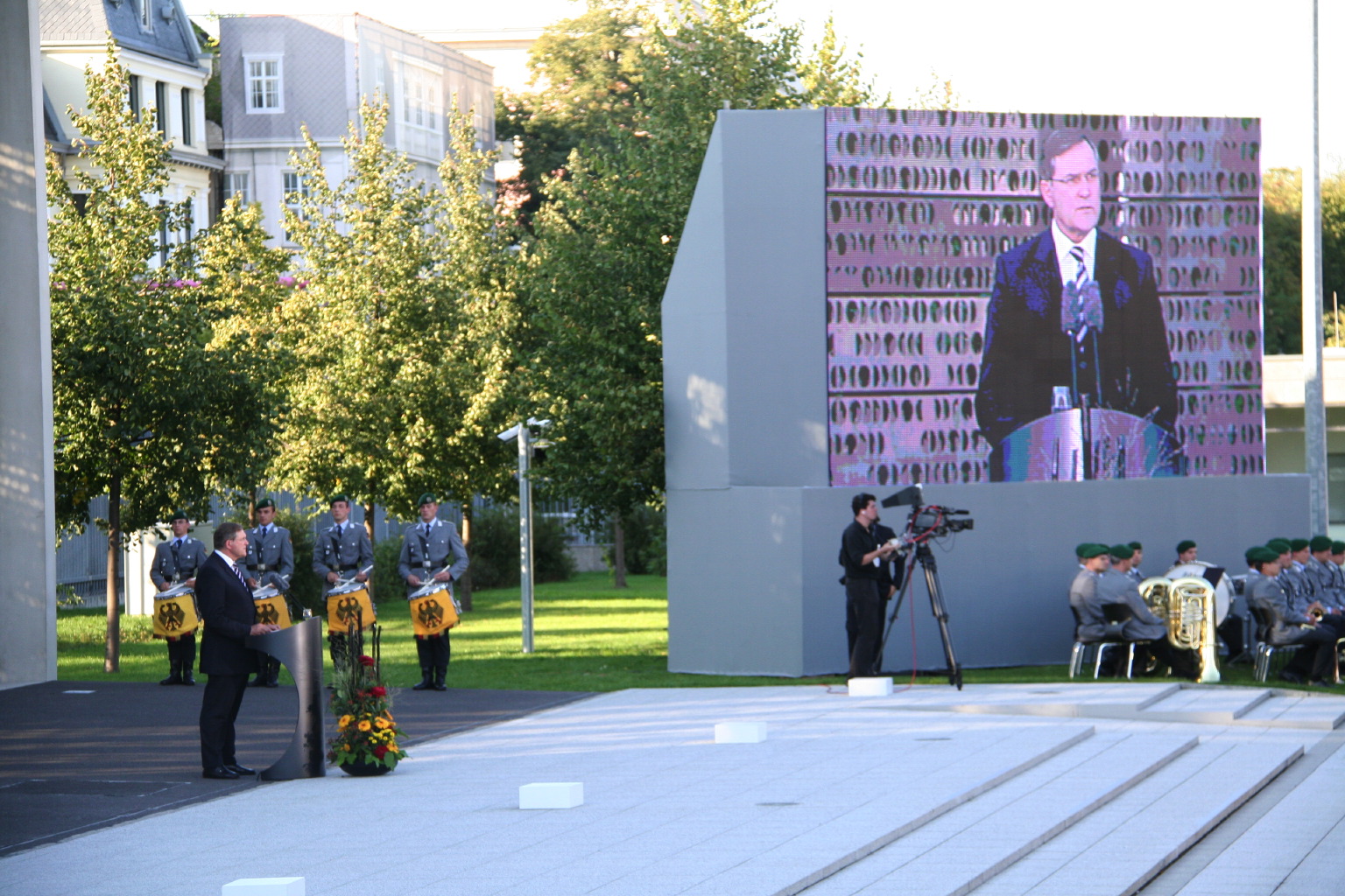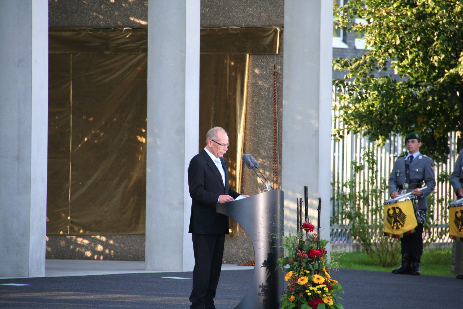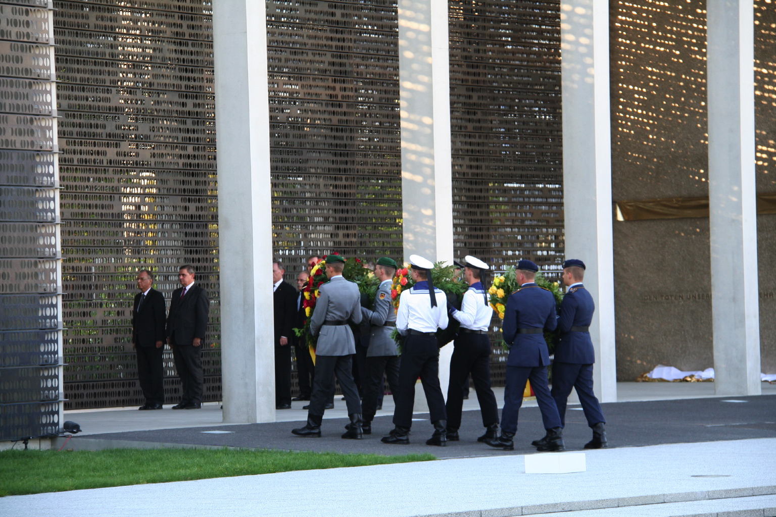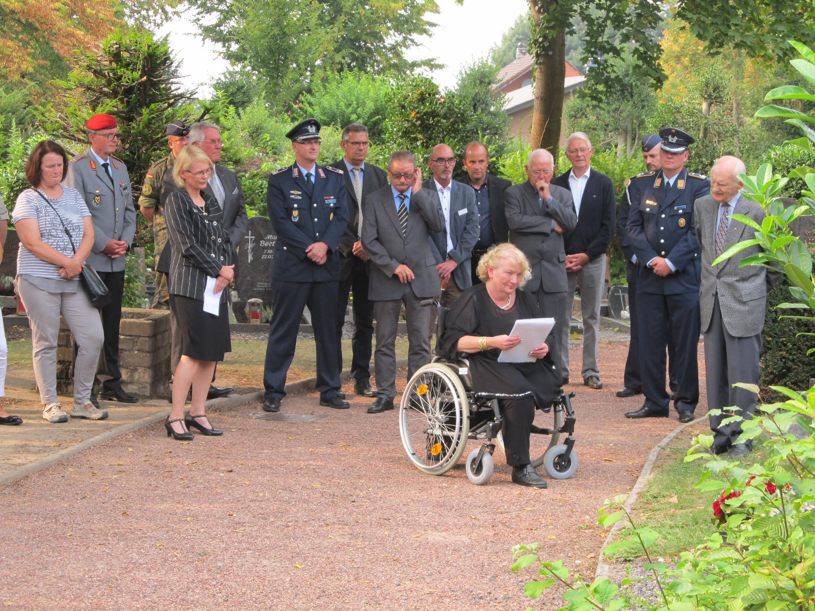 Die Beauftragte Angelegenheiten für Hinterbliebene , Frau Ministerialrätin, Diplom-Psychologin Susanne Bruns war extra aus Berlin angereist. Sie verlaß ein Grußwort der Bundesministerin der Verteidigung, Frau Dr. Ursula von der Leyen. Der Kommandeur des Verifikationsamtes, Brigadegeneral Peter Braunstein, legte einen Kranz an Jennys Grab nieder. Für den E3A-Verband der AWACS nahm Oberstleutnant Dr. Etzbach als Kommandeur der Unterstützungsgruppe (DDO/DtA NAEW & C E-3AC) an der Zeremonie teil.